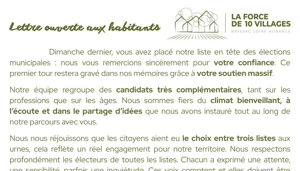 Lettre ouverte aux habitants à l’issue du 1er tour